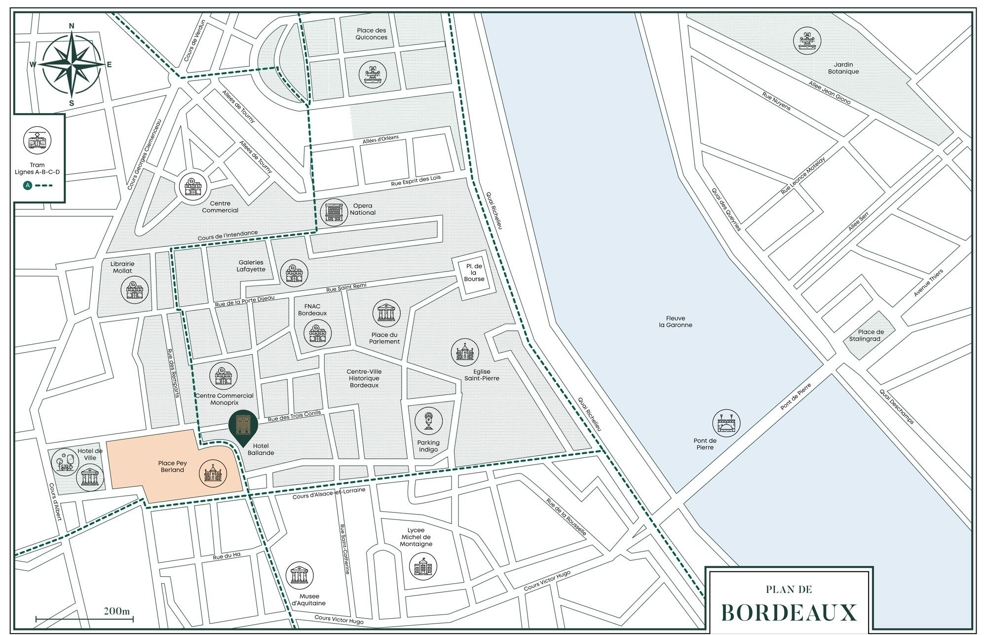 Le vieux Bordeaux est niché au coeur de la ville, entre ses anciens murs, les yeux rivés sur le fleuve. Le paysage du quartier de l’Hôtel de Ville y mêle harmonieusement le Palais Rohan et son imposante colonnade, la rue Sainte-Catherine, où déambulent sereinement les passants, et les flèches de la Cathédrale Saint-André.